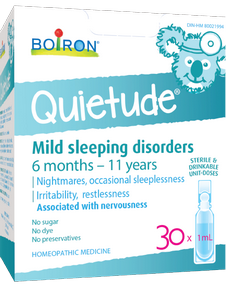 Quietude is a homeopathic medicine that helps relieve mild sleeping disorders children may experience, such as nightmares, night terrors, occasional sleeplessness, irritability & restlessness associated with nervousness.
