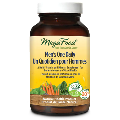 MegaFood® Men’s One Daily is specifically formulated without iron to support the health and wellbeing of men under the age of 40. (Iron is not recommended for men unless specifically directed by their healthcare practitioner.) Our multi nourishes the body in a convenient, once-daily tablet and includes important micronutrients as well as whole foods and herbs providing phytonutrients for optimal well-being.