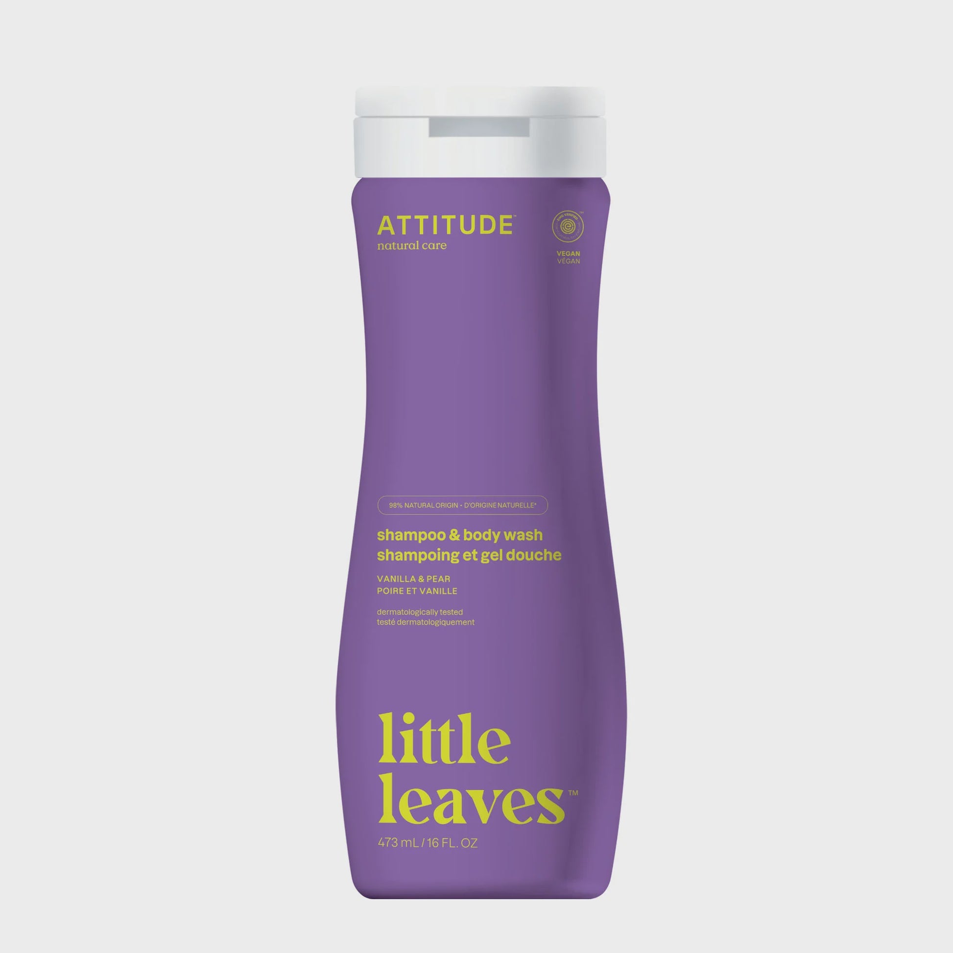 Make bath time fun and foamy with ATTITUDE little leaves™ 2-in-1 Shampoo and Body Wash – Vanilla & Pear. Our gentle, natural cleansing formula is perfect for your little one’s delicate skin and scalp. Non-irritating, EWG VERIFIED™ and dermatologically-tested, our hair and body wash is made with natural, plant based and hypoallergenic ingredients like soothing blueberry leaf extract and detoxifying moringa seed extract. Clean your child’s hair and body in one single step, leaving more time to play!