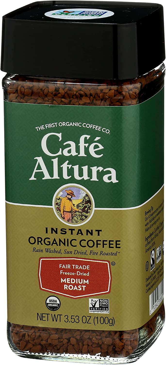 Cafe Altura Instant Coffee is mildly roasted and freeze dried in a certified organic process which delivers the smooth taste and aroma of fresh coffee without any bitterness.