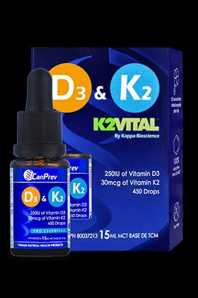 CanPrev’s D3 & K2 drops has been reformulated with K2Vital, a unique form of MK-7 that is soy-free, plant sourced, and 100% trans form, yielding a pure, bio-active form of vitamin K2 MK-7. These fat-soluble vitamins are suspended in a medium chain triglyceride (MCT) oil base. MCT oil consists of stable fatty acids that enhance the absorption of fat-soluble nutrients. Get the benefits of a sunshine vacation every day of the year with CanPrev’s D3&K2!