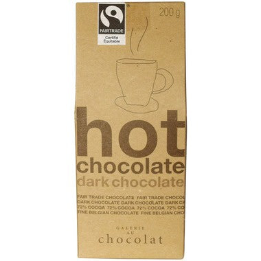 Made with only fair trade, organic ingredients and; you can taste the difference it makes.This fine Belgian style hot chocolate contains 72% Cocoa, classifying it as dark chocolate without being too overpowering in tartness.