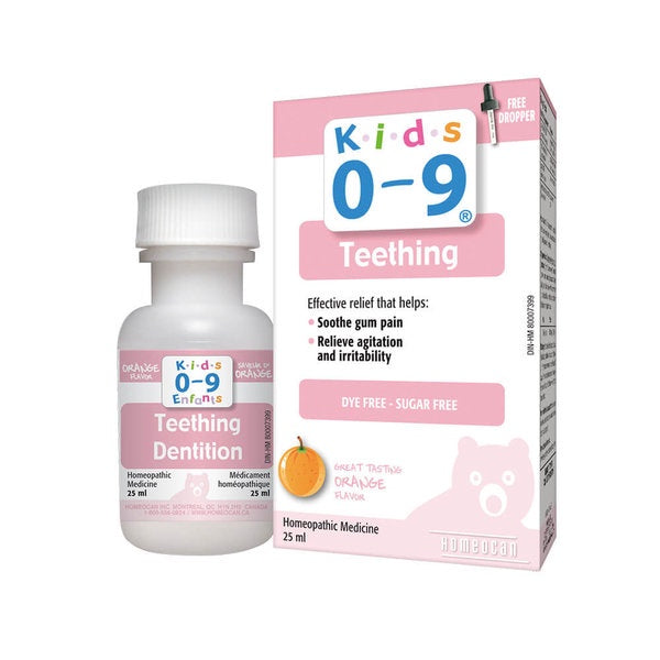 Kids 0-9 Teething Oral Solution is a fast acting homeopathic medicine that helps soothe gum pain, relieves irritability, and agitation caused by teething with a great orange flavour!
