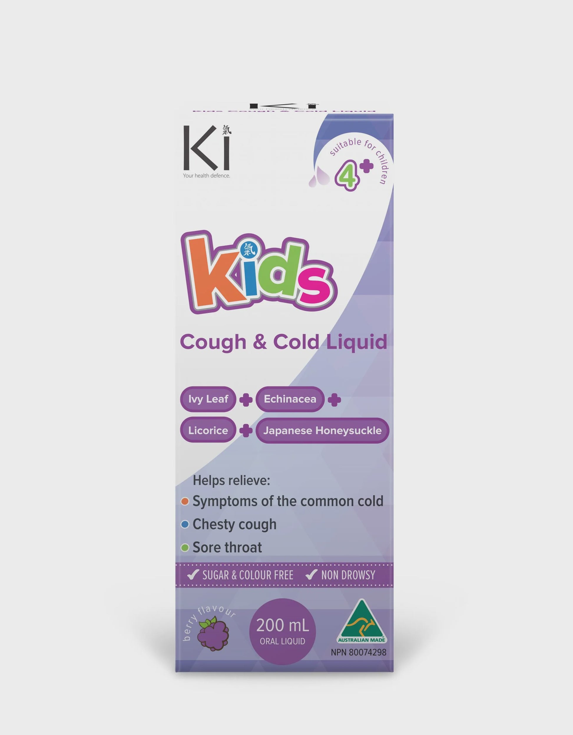 Ki Kids Cough & Cold Liquid combines 4 natural active ingredients traditionally used to relieve symptoms of the common cold, including chesty cough and sore throat. Suitable for the whole family and for children from 2 years of age.