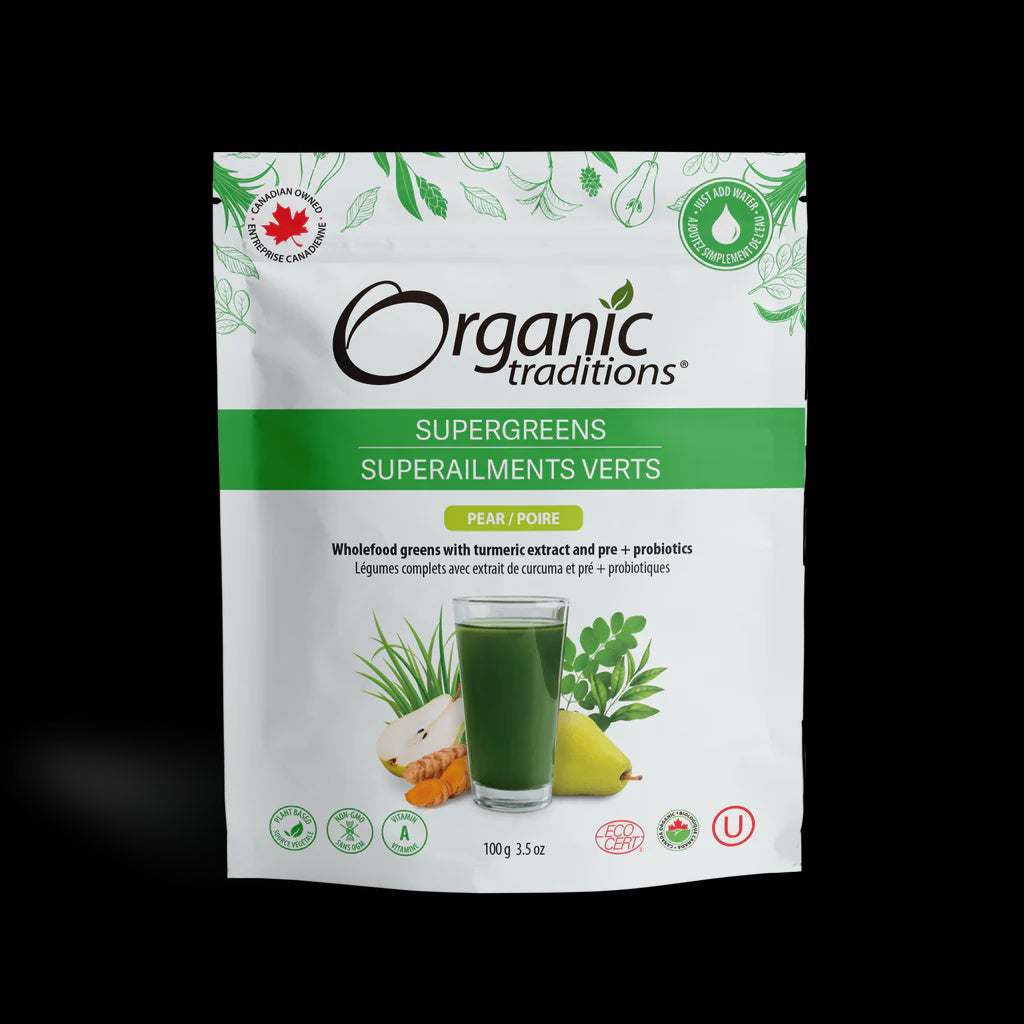 - An organic green superfood blend of alfalfa grass juice powder, barley grass juice powder, wheat grass juice powder, kamut grass juice powder, oat grass juice powder, chlorella, spirulina, moringa, matcha, acacia fibre, turmeric and probiotics.